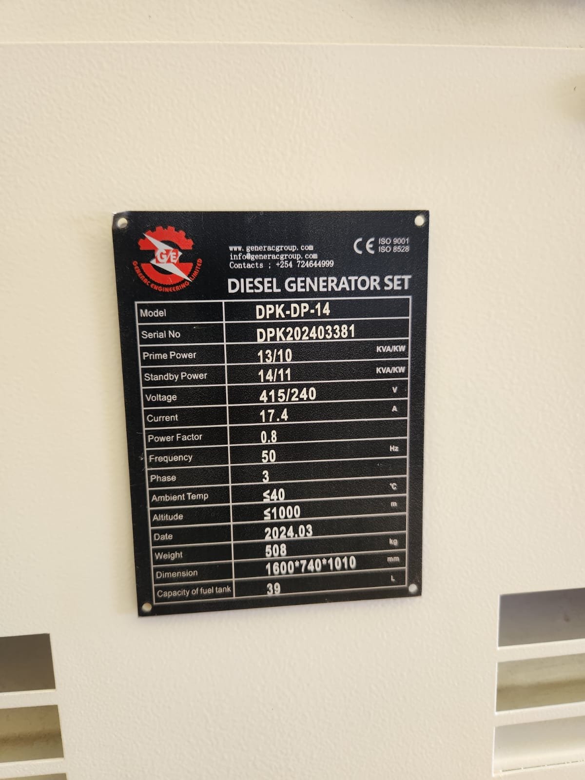 Supplied brand new and covered by a 1-year manufacturer’s warranty, this unit is fully supported by Generac Engineering Limited’s professional installation, commissioning, and preventive maintenance services.